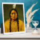 Esta placa superior de la mesa con el caballete presenta al legendario Hunkpapa Lakota Sioux, jefe indígena nativo americano, chamán, hombre sagrado y guerrero, Sitting Bull, 1831-1890. Esta es una versión coloreada de la foto original creada por David Francis Barry alrededor de 1885. La foto original en blanco y negro se conserva en la colección permanente de la Biblioteca del Congreso.