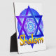SHALOM, la palabra hebrea para la paz, está en letras de color dorado debajo de la icónica Estrella de David, superpuesta a un estilizado medallón con la estrella en su centro. Tanto los judíos como los gentiles disfrutarán de este diseño con su oportuno recordatorio de la necesidad de paz en todo Israel.