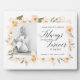 Recuerde y aprecie a su ser querido con esta placa conmemorativa de la foto de este personalizado adorable. El diseño presenta un bonito diseño de marco floral de color rosa y verde salado con un diseño fotográfico único. "Siempre en mi mente para siempre en mi corazón" se muestra en moderna caligrafía negra y personalizada con nombre y fecha de nacimiento y fecha pasada.