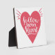 Sigue tu corazón - blanco moderno frase caligráfica escrita a mano sobre fondo de corazón rosado. con textura granulada. Diseño de tarjetas vectoras con tipografía aproximada | Bigstock® - Todos los derechos reservados.