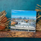 Pintura de Milán con rascacielos modernos en el distrito financiero de Porto Nuovo y estatuas de piedra de la catedral del Duomo.