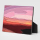 Diseño artístico abstracto de puesta de sol en tonos rosa, lila, negro, rojo y melocotón.