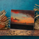 Un diseño artístico de una dramática puesta de sol sobre el mar.