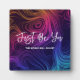 Una placa con un patrón fresco con unas vibraciones de los años 60. Círculos y giros de color arcoiris. El texto inspirador dice: "Sé tú, el mundo se adaptará".