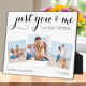 ¡Sólo tú y yo y el perro! Regalo de boda perfecto para parejas amantes de los perros. Esta placa de collage de fotos personalizadas es un hermoso recuerdo, personalízala con nombres y fecha o año de boda. Agrega tus 3 fotos favoritas. DERECHOS DE AUTOR © 2020 Judy Burrows, Black Dog Art - Todos los derechos reservados. Placa de collage de fotos personalizado Sólo tú, yo y el perro