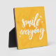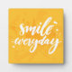 Sonríe todos los días. Cita inspiradora positiva sobre fondo de color amarillo. Letras vectoriales para posters, tarjetas y contenido de medios sociales | Bigstock® - Todos los derechos reservados.