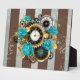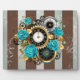 Placa Expositora Steampunk Clock and Turquoise Roses on Striped