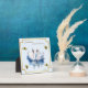 Cáncer tranquilo sobre fondo azul. Placa cuadrada en la mesa. Él me guió al lado de las aguas residuales... 23. Marco y pineconas de oro. Gracias por buscar.