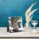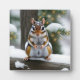 Esta placa fotográfica con temática invernal presenta una tibia capucha en un mágico bosque de invierno.