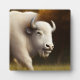 La placa artística de tabletop muestra la pintura digital de un búfalo blanco, conocido dentro de las culturas nativas estadounidenses como sagrado o con significado espiritual.