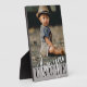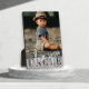Placa fotográfica moderna con una sola foto de un niño y con letras modernas en un fondo gris. Hermoso regalo para los papás.