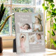 Sencillo y tan dulce y considerado, esta placa personalizada de caballete dice "Te queremos Nana" en tipografías modernas de moda junto con los nombres de los niños. Un collage con un estilo arreglado que incluye 4 de tus fotos seleccionadas hace un recuerdo maravilloso para atesorar a través de los años. Corazones de garabatos dibujados a mano acentúan el diseño para agregar un toque afectuoso. El color de fondo que se muestra aquí es un beige taupe neutral. El nombre "Nana" se puede personalizar con cualquier otro nombre del destinatario, es decir, abuela, Gigi, meema, abuelito, grammie, granny, mamá, mimi, niñera, nona, etc. Dale un regalo que ella amará y atesorará durante años. Sube tus fotos digitales para personalizar un regalo que ella realmente atesorará.