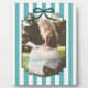 Teal green graduation with trendy stripes and ribbon bow. Photo template via Pixabay licensed under CC0 and must be replaced with your own photo.