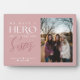 Un regalo especial y memorable de placa de una sola foto para tu hermana. El diseño presenta una sola foto para mostrar tu propia foto especial de hermana. "Tenemos un héroe y la llamamos hermana" se muestra en tipografía elegante. Nota: los colores se pueden cambiar para adaptarse a tus preferencias.