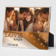 Placa fotográfica con un diseño retro boho en terra cotta con 3 fotos de sus personalizados. El texto LOVE es una adición estilizada del diseño. Un bello recuerdo para un compromiso, boda o aniversario.
