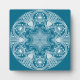 Esta mandala blanca se sienta sobre un fondo verde azulado. Los colores son muy tranquilos y relajantes. Parte de la colección Howlsplann Mandala.