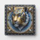 Esta obra de arte en 3D imita la artesanía de un metalero de orfebre especializado en oro, plata y otros metales preciosos. Presenta un retrato de tigre 3D en tonos oro y plata metálicos, ambientado con un fondo de hojas de estilo barroco muy detalladas. La obra se imprime para capturar las texturas ricas de los efectos visuales de los elementos metálicos.