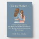 Placa Expositora To My Sister – Custom Photo Message Plaque