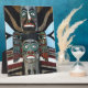 Tótem de madera, escultura monumental tallada en árboles grandes, efecto de pintura