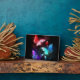 Placa Expositora Tres mariposas brillantes en el fondo nocturno