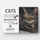 Si tuvieras un gato al que amabas y adorabas, esta bonita placa conmemorativa de un mascota que muestra una foto de tu mascota es un placer para ti y para la familia. Tiene una cita de simpatía que dice "Los GATOS entran a nuestras vidas y dejan huellas en nuestros corazones", un par de huellas digitales, un corazón, el nombre de sus mascotas y fechas