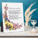 ¡Un homenaje a todos los afortunados que han llegado a su quincuagésimo aniversario boda! Para un Aniversario de Oro usé colores brillantes y hermosos de rojo y oro para brillar en este arreglo de salvia, pansies, verbena y larkspur. Hay espacio para personalizar con nombres para hacer de esto una pieza extra especial.