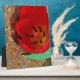 Tulipán rojo y amarillo primavera contra una roca marrón en el lago Arrowhead. Foto de Sandy Closs. Pascua, flores, flores rojas, primavera, valentina, valentinas, boda, bodas, San Valentín