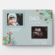 Plaque del Día del Padre Fotos Cacti. Foto de niño y foto de ultrasonido de niño que viene. Personaliza con tus nombres. Fondo Turquesa. 2 fotos.