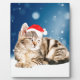 Placa Expositora Un gato lindo vestido con Navidades de sombrero ro