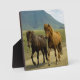 Una adorable y adorable foto de dos ponis icelandeses tirando por un camino de tierra. Una es una bahía y la otra es de color castaño. Sus preciosos hombres soplando en el viento. Un hermoso paisaje montañoso se puede ver en el fondo y añade un sentido de asombro a esta imagen. Apelando a los hípicos y ecuestres de todas las edades.