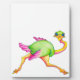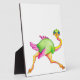 Un avestruz muy poco común que corre alardeando de sus plumas de color arcoiris.