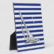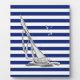 Un cromo plateado, como el diseño de un barco de vela regatta, en una decoración de rayas azul marino. Un regalo náutico moderno. Utilice el vínculo "Preguntar a este diseñador" para contactarnos con sus solicitudes de diseño especiales o para obtener ayuda con alguna de sus necesidades de personalización.