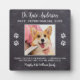 ¡Diga 'Gracias' a su maravilloso veterinario con una preciosa placa fotográfica mascota personalizada del perro! Personaliza con el nombre del mascota y la foto favorita. Este regalo de apreciación veterinaria será un tesoro. Personalizar 'Mejor Veterinario de la Historia' para Asistente de veterinaria, Vet Tech o Título Veterinario. DERECHOS RESERVADOS © 2020 Judy Burrows, Black Dog Art - Todos los derechos reservados. Veterinaria Gracias Personalizado de regalo Mascota de perro placa fotográfica