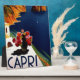 Mar Azul, Casas Blancas y Flores Coloridas en pintura de malva