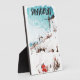 Tabletop Plaque de moda Santorini Grecia acuarela con Easel que muestra el hermoso paisaje y arquitectura de la isla griega. Bonita placa de decoración casera para tu escritorio y mesa y también un gran recuerdo.