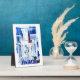 Hermosa Plaque de Tabletop con vistas al Easel sobre un pueblo de la isla griega de Santorini Grecia con su asombrosa arquitectura. Elegante regalo de decoración casera y recuerdo para tu escritorio.