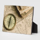 Placa Expositora Vieja brújula sobre mapa antiguo