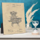 Ilustracion de patente de diseño de época para estufa de cocina de 1903 sobre fondo de papel antiguo.