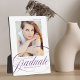 Celebra el logro de tu graduación con una foto de personalizado. La placa de la foto muestra la foto del graduado con "graduado" exhibida en un elegante guión de caligrafía púrpura. Personalice la placa fotográfica moderna de graduación añadiendo el nombre del graduado, el año escolar y el año de graduación.