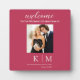 Bienvenido a sus huéspedes con elegancia y estilo usando nuestro Rótulo de bienvenida "Viva Magenta y Blanco". Este letrero de bonito diseño presenta una temática de Viva Magenta y Blanco, lo que hace una primera impresión memorable a medida que llegan tus seres queridos. Personalízalo con tu foto, nombres y fecha boda favoritos para añadir un toque único. Explore este elegante montaje de su recepción, marcando el tono para una celebración sofisticada.