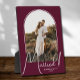 A special keepsake features your wedding photo in an elegant arch design with the text "Married" in chic text along with your names and wedding date on a burgundy background. Beautiful gift for your family and a fabulous memory to display in your own home. BACKGROUND color can be changed! MORE COLORS in our collection.