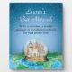 Un globo de nieve con algunos de los lugares más reconocidos del mundo es la pieza central perfecta para el atrevido muchacho Bar Mitzvah o el chica Bat Mitzvah, o al menos uno que sueña con viajar a lugares fabulosos. Un globo nevado con una Estrella de David se sienta en la parte superior de un mapa del mundo en esta divertida placa. En el interior del globo de nieve, los monumentos incluyen la Estatua de la Libertad, el Arco del Triunfo, la Torre Eiffel, el Taj Mahal, la Catedral de San Basil, la Torre de Aprendizaje de Pisa, las Pirámides y un edificio de estilo chino. Añada el nombre del Bar/Bat Mitzvah, la fecha del evento y un mensaje especial arriba contra el fondo azul nevado imitando la "nieve" interna del globo de nieve. Lo suficientemente versátil para un Bar o Bat Mitzvah. Si lo prefiere, se puede eliminar cualquier texto para dejar el área en blanco. Ideal como señal de bienvenida para tus invitados o escribe un mensaje especial para que todo el mundo lo vea. Disponible con productos coincidentes. com