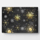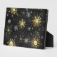 Placa Expositora Xmas copos de nieve dorados sobre fondo negro