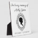 Hermosa placa de memoria para tu casa o en la tumba. Puedes reemplazar la silueta con tu propia foto o con una silueta de tu ser querido. Si tienes alguna pregunta o necesitas ayuda, ponte en contacto y estaré encantado de ayudar.