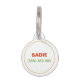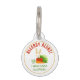 Difunde la conciencia de la condición de su perro cuando se trata de su alergia a los alimentos. El original ilustracion colorido de Destei de una colección de alimentos que incluyen una cabeza de ensalada verde, una zanahoria naranja, una manzana roja y algunas pajaritas de trigo. En la parte superior hay un área de texto personalizable que ahora dice: "¡Alerta alérgica!" en letra roja en negrita. En la parte inferior hay otro área de texto personalizable que ahora dice: "Tengo alergias a alimentos" en color verde. El diseño está enmarcado por un borde de círculo delgado del mismo color que la planta de trigo. En el otro lado hay áreas de texto personalizables para un nombre y un número de teléfono.