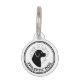 La silueta original ilustrada de Destei de la cabeza de un perro negro que se parece a un Golden Retriever y razas similares con orejas disquetas. Alrededor del perro hay líneas agudas grises que ilustran una crisis epiléptica. Bajo el perro hay un área de texto personalizable que ahora dice: "Perro epiléptico". En el otro lado hay áreas de texto personalizables para un nombre y un número de teléfono. Difunde la conciencia de la epilepsia de su mascota.