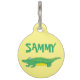 Placa Para Mascotas Amarillo lagarto verde Crocodile Gator Croce Anima