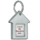 Etiqueta de identificación de mascota con forma de casa impresa con texto de plantilla personalizable frase Amo a mi perro Labrador Chocolate Agrega nombre en sombreros, camisetas y productos para mascotas por TheFabricSeal tienda de impresión bajo demanda en Zazzle.com #ZazzleMade https://www.zazzle.com/store/thefabricseal