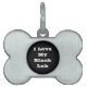 Etiqueta de identificación de Mascota con forma de hueso impresa con la frase de texto de la plantilla de personalizable I Love My Black Lab on Gorras, Camisetas y productos de Mascota de TheFabricSeal print on demand shop en Zazzle.com #ZazzleMade https://www.zazzle.com/store/thefabricseal Estas etiquetas de mascota con forma de hueso personalizado son el accesorio perfecto para sus peludos amigos de cuatro patas. Fabricada con plata pulida e impresa con tus imágenes, diseños y textos a todo color para que no se desvanezcan en años. Este precioso accesorio es resistente a los rayos UV y al agua, de forma que aguantará perfectamente el paso del tiempo hasta con la mascota más aventurera. Disponible en formas populares de hueso y casa. Estos gorras, camisetas y productos mascotas divertidos te permitirán mostrar cuánto amas a tus Labs. Los labradores negros son conocidos por su temperamento amigable, enérgico, lúdico e inteligente, convirtiéndolos en grandes compañeros de familia, y su afán por complacer y su entrenabilidad altamente entrenable, lo que les permite destacarse como perros de servicio y terapia. Este es el diseño perfecto para los amantes del perro para complementar y transferir a nuestra enorme colección de productos que ofrecemos en nuestra tienda POD en Zazzle. Míralos a todos. Por favor, revisa nuestros 400 + excelentes diseños originales y colecciones de productos de nuestra tienda de productos y Neckties Select Flagship. Excelentes selecciones de regalos para la familia, amigos y para usted, por supuesto. Todas incluyen opciones de personalización. Personaliza tu propio diseño, monograma, nombre, patrón, fotografía, cita o lema. Muchas gracias por elegir y comprar con nosotros. Agradecemos su apoyo. Disfruta de tu experiencia de compras. ¡Descúbrelos.