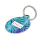Azul con toques de color morado y tropical Palm Tree Leaves mascota etiqueta personalizada con su nombre mascota.